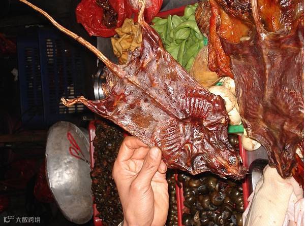 据说这个叫水果蝙蝠,所以翅膀很大,卖得好价钱