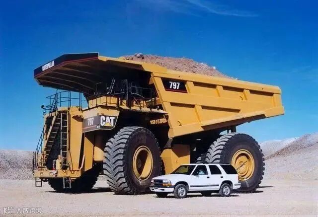 世界上最大的矿石车卡特彼勒797 vs 一辆普通的汽车