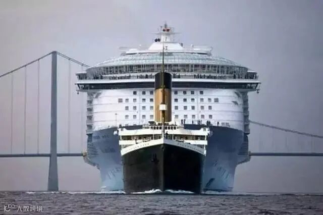 泰坦尼克号在人们印象中是个庞然大物,但毕竟过了这么多年,它在现代邮轮(海洋绿洲号)面前,只能说是个弟弟