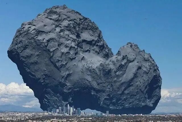 罗塞塔号探测器的探测对象67P/楚留莫夫-格拉希门克彗星vs洛杉矶市,虽然彗星的个头是天体中的弟中弟,但对于人类来说,还是很吓人的!