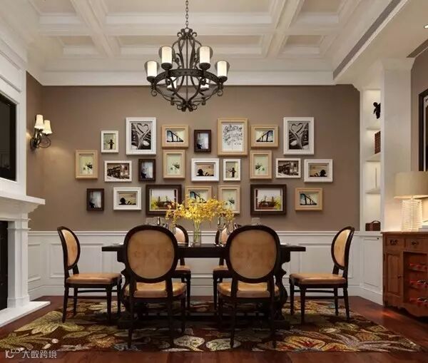 选择可为进餐提供和谐气氛的图画。如食品写生、欢宴场景或意境悠闲的风景画等。当然各种仿真的鲜果装饰也有着同样的效果。其中,橘子代表富贵,桃子代表长寿和健康石榴代表多子多孙。镶嵌在墙上或餐具柜上反映餐桌的镜子,能够反射出食物及餐桌,还可延伸空间,增强食物的能量是餐厅中非常好的立面装饰之。餐厅适合摆放福、禄,寿三仙,象征财富、健康和长寿。