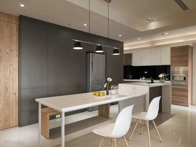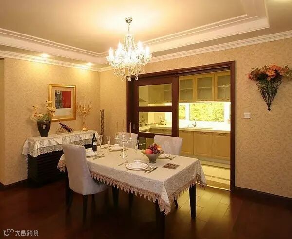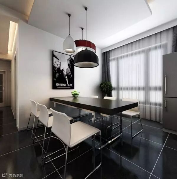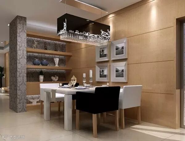 需要注意的是,餐厅装修布置时不能干扰到厨房的烹饪炒作,也不能破坏就餐的气氛,尽量在厨房与餐厅之间有隔断或使餐桌布置远离厨具。