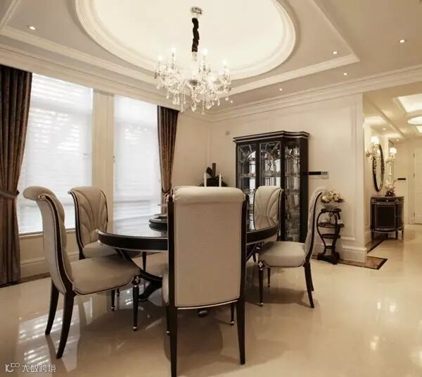 需要注意餐桌、椅、柜的摆放与布置须与餐厅的空间相结合,如狭长的餐厅可在靠墙或窗一边放一长餐桌,桌子另一侧摆上椅子,这样空间会显得大一些;方形和圆形餐厅,可选用圆形或方形餐桌,居中放置。