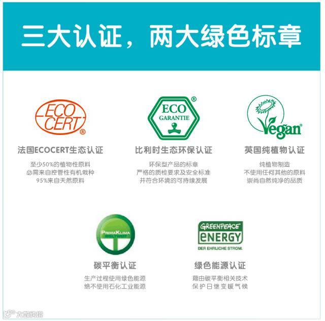 比利时环保认证、法国有机认证、英国纯植物认证、绿色能源认证、碳平衡认证