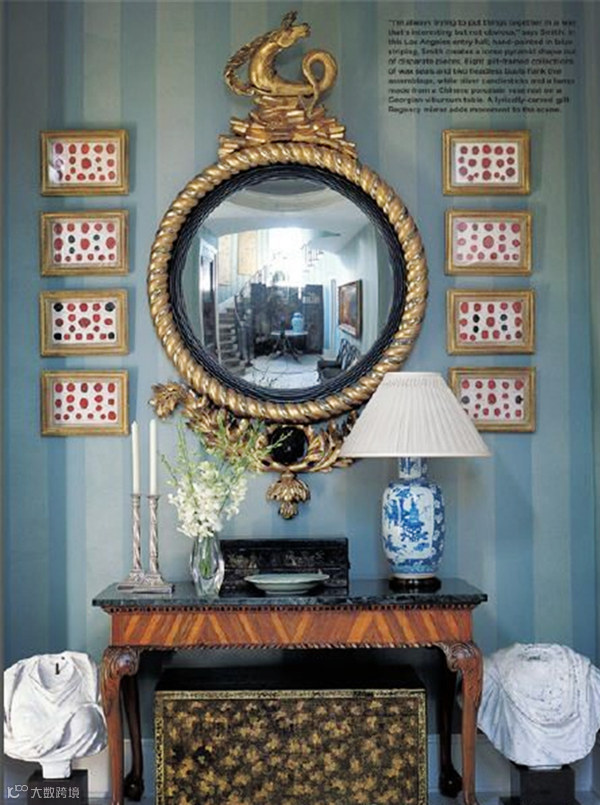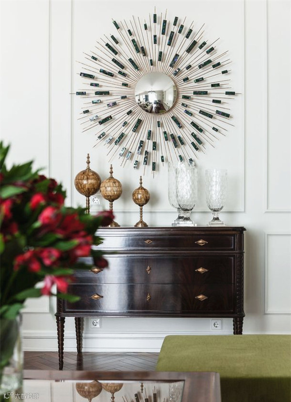 ▼镜子也可以作为装饰,尤其是那些小小的、窄窄的或者黑黑的外框,很有艺术感。把它们挂在玄关入口墙壁的任何一侧反射光线,都可以使入口感觉更大。