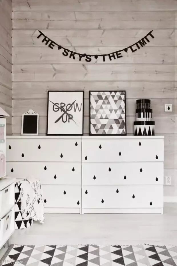 ▲灰色调放进儿童卧室,伴随着条纹玩偶、飞跃的鸽子墙贴也不失活泼