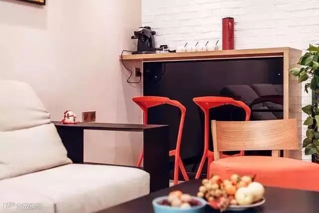 餐厅,搭配有收纳功能的卡座。而在房门开合之际,色彩的穿插又营造出不一样的视觉感观。