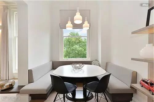 这个内凹的小空间,放餐桌+餐椅的配置会显得十分尴尬,直接加塞卡座,使得小空间的整体性更好。