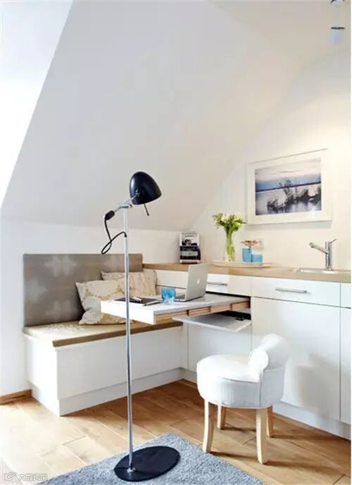 开放式厨房搭配简易隐形书房,抽拉式的桌板适合笔记本娱乐办公,陪伴式的设计也会让家居体验更好。