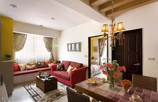 珊瑚红的色彩挑选,跳出空间明亮好气色。