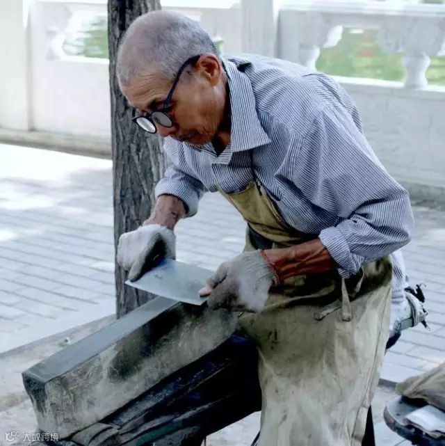 “磨剪子,锵菜刀…… 磨剪子,锵菜刀…… ”这个调子想必很多人还很熟悉,但偶有人在哼唱的时候,也带了玩笑的味道。磨刀,把原先钝钝的刀,磨得锋利,看似简单,实际上却很不容易。现如今,在街上我们已经很难见到磨刀的匠人了。