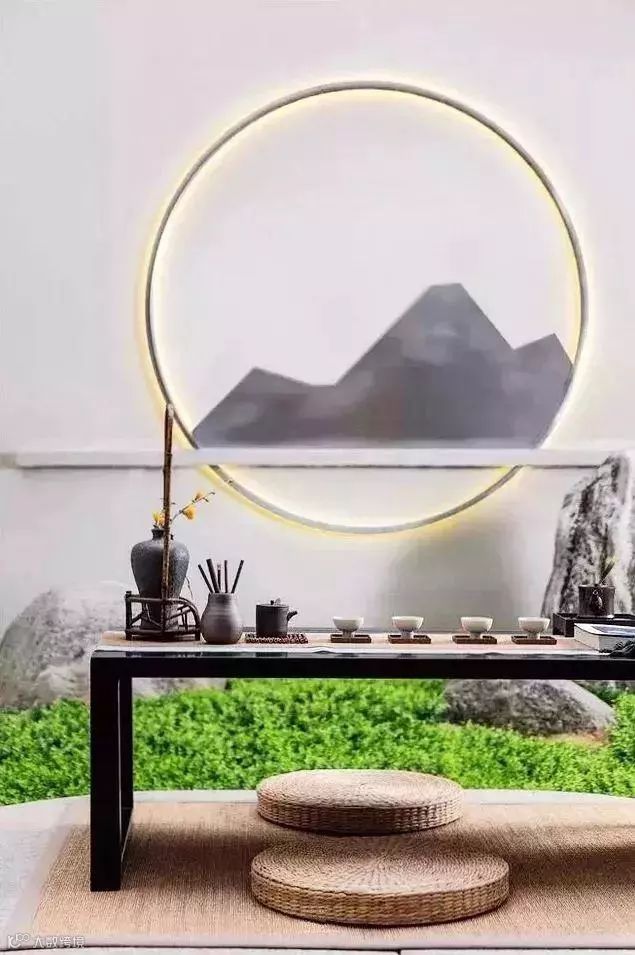 不管是家装还是工装,加入中式“圆”的元素,整个空间的意境就出来了。