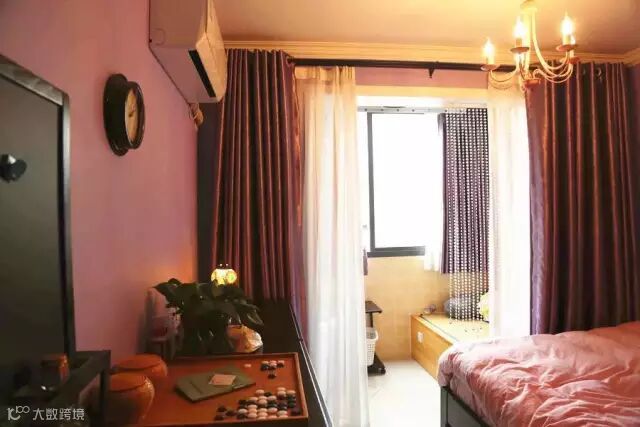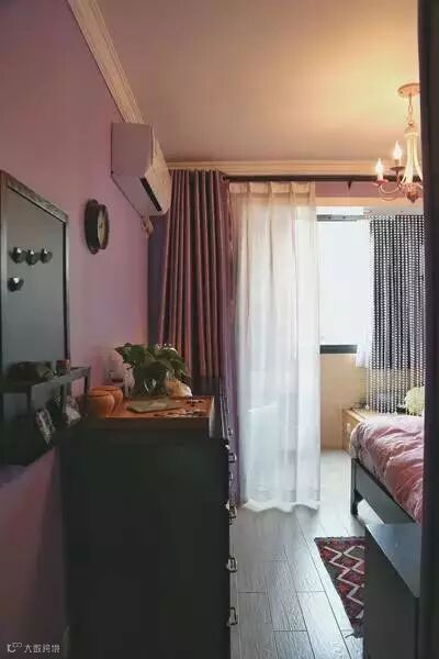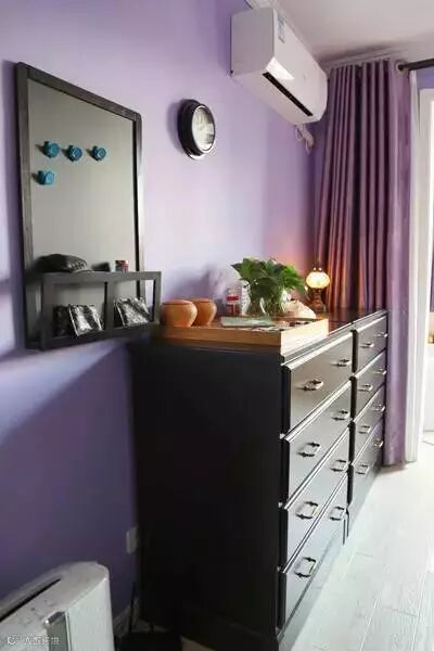 卧室安娜苏的黑紫色也是胡小姐拿着包装袋去调色的,卧室的家具略带简欧风格,也是呼应安娜苏的风格。