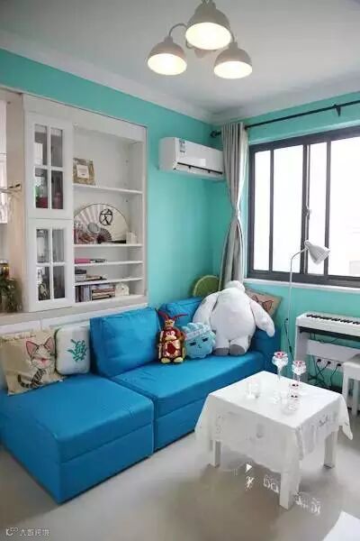 客厅的布艺沙发定制了2种颜色,米色和蓝色,使用下来还是觉得蓝色更耐脏。