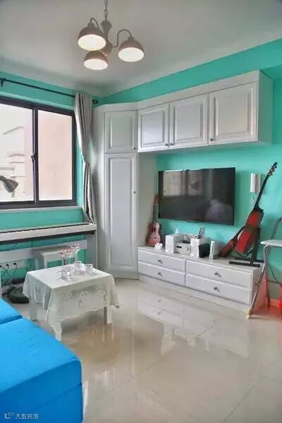 先来介绍一下房子的基本情况,房子位于小高层的8楼,建筑面积52平,使用面积42平,一室一厅。客厅采用了Tiffany蓝,卧室采用Anna Sui的黑紫色。