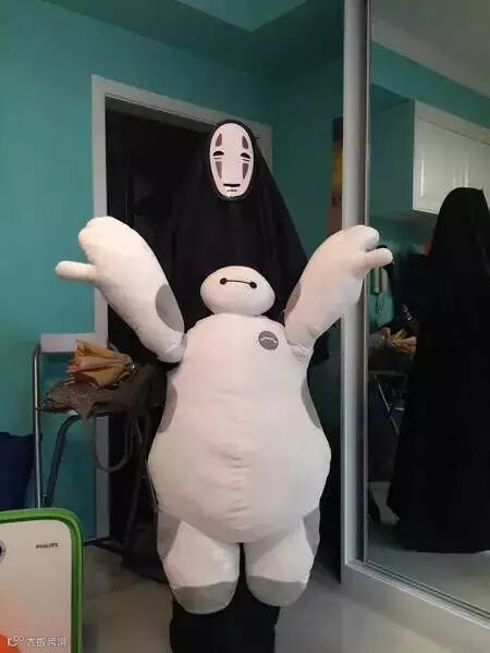 2015年万圣节时和闺蜜在家轰趴时的照片,大白也出镜啦!