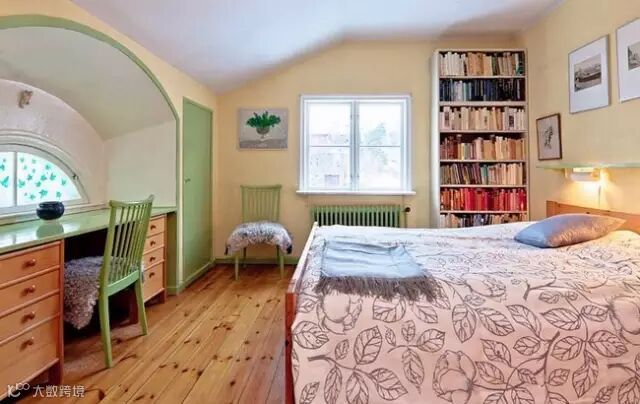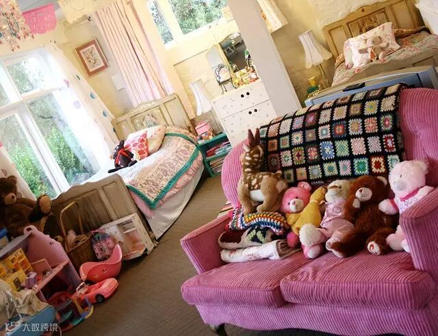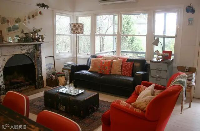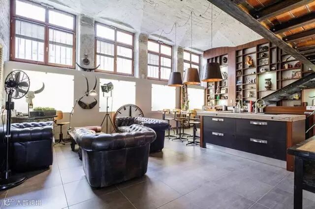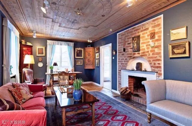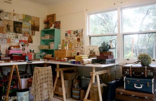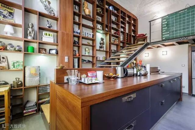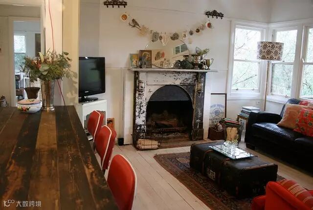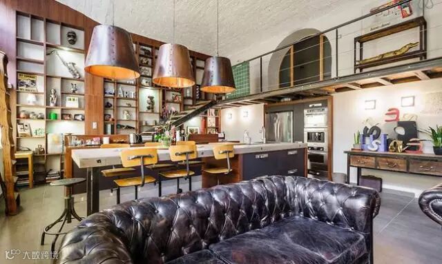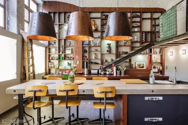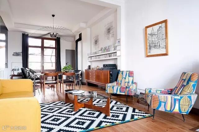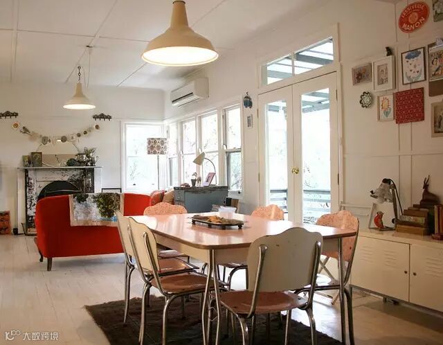 ▶一些收藏的复古家居随地可见,开放式的生活区,工作区相连,一些孩子们的艺术作品也作挂画挂在墙壁上装饰,显得更加真实特色。