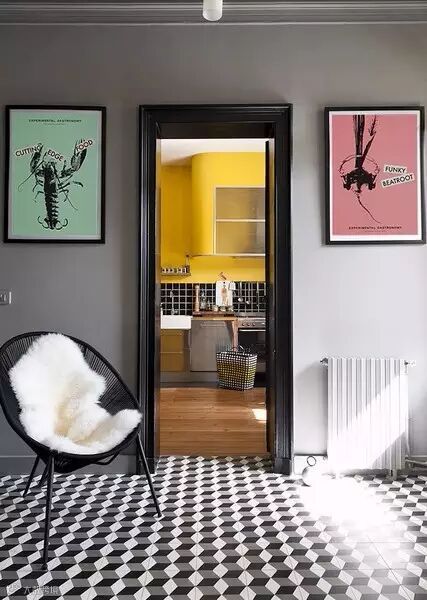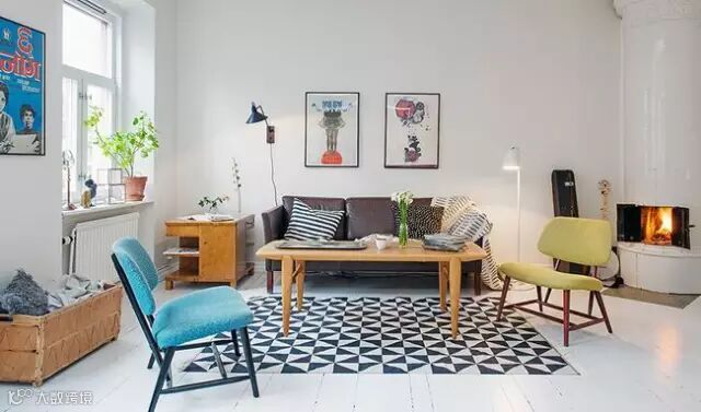 ▶客厅中巧妙地摆设几张二手单人椅,接着在墙上挂几张色彩鲜艳的老海报,一个复古空间的风格就大致成形了。