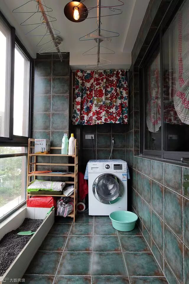 如果卫生间够大,可以顺便将洗衣机容纳,兼职当个洗衣房。可是如果卫生间太迷你,你可以考虑放在阳台,洗完衣服还可以随手晾了,何乐而不为。左边可以放下洗衣机,右边则设计成洗衣池,在这个透着新鲜空气的阳台里,洗衣不再觉得枯燥无味。