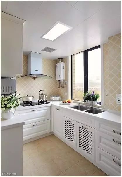 白色的厨房总是让人感觉很干净。只不过打扫起来同样很累人。在角落处摆放几株百合花,嫩绿的叶子,清新的颜色。才有家的感觉。