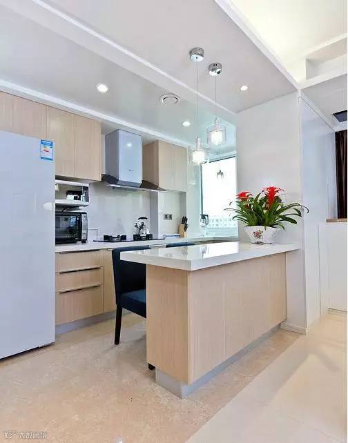 开放式的厨房,光洁的流水台,阳光正好。不过喜欢做饭的人还是不要轻易尝试这样的装修,油烟太大。
