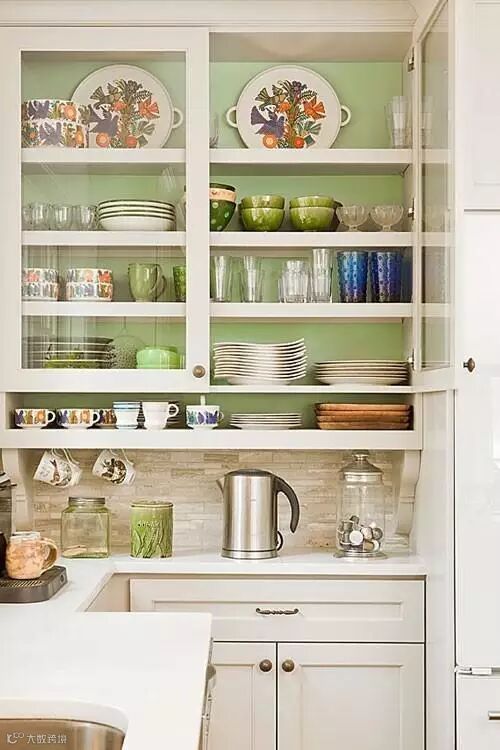 这样摆放碗碟的柜子很好看。最上层的两只碟做装饰够赞。太高,很难够得着。