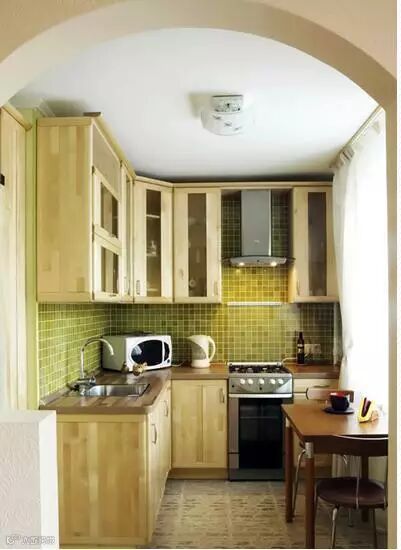 小户型的厨房设计。原色系的橱柜。清新自然。