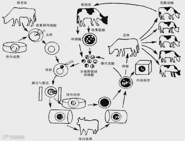 相比之下,这种克隆方式难度就大的多,且成功率也非常低,诞生这样一个体细胞的克隆体,可能会死掉成百上千个幼体。