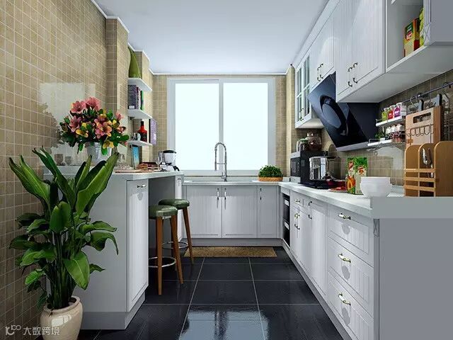 1〉想要开放式厨房又怕油渍难清理的,可以考虑做玻璃滑动门窗,有开放式厨房的视觉,也能防止污渍。