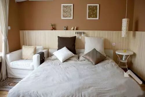 除掉杂乱的家具,去除不必要的化妆台、床头柜和电视柜等可以为卧室腾出空间,这些家具可放置在室内的另一些房间,小小的卧室空间变得宽阔。