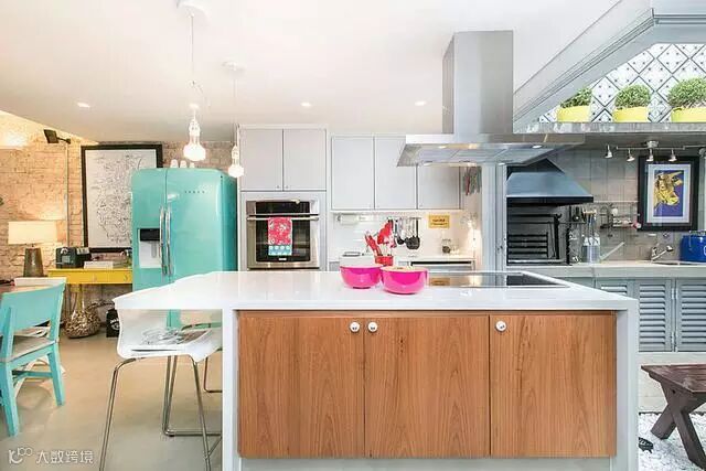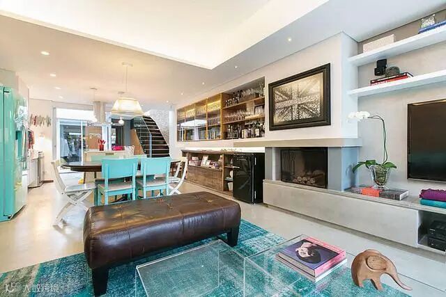 整个空间以白色和湖蓝色为主色调,看起来非常亮眼,给人耳目一新的新鲜感。