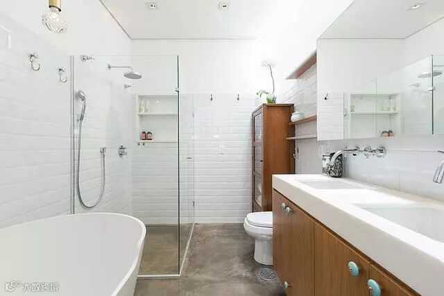 卫生间的洗漱台分为两个小水池,早上家人一起洗漱也不会觉得拥挤,设计的很合理。