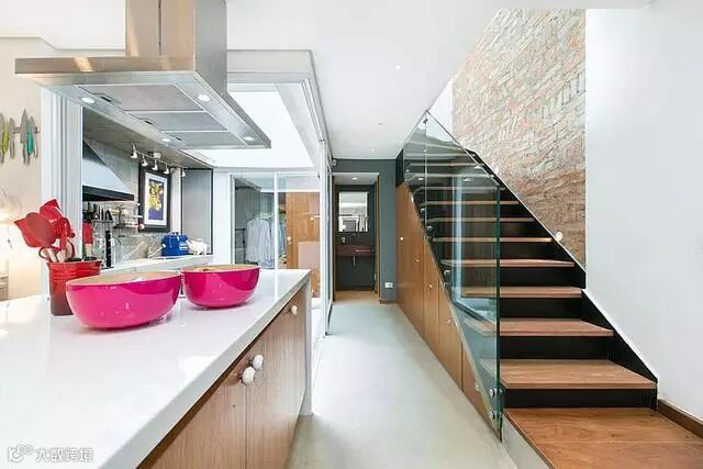 在楼梯下设计了储物柜,用来放置物品,合理的利用了空间,非常值得赞赏。