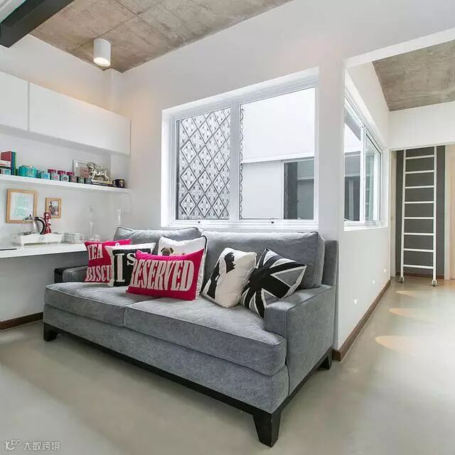 休息区域,选用了一个灰色的沙发,看起来安静舒适。