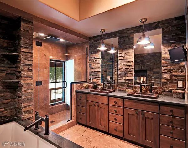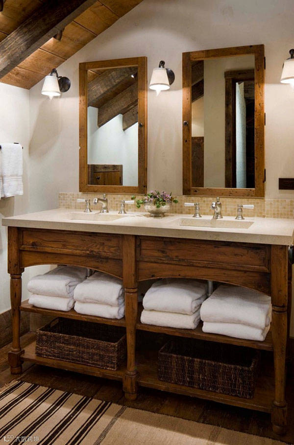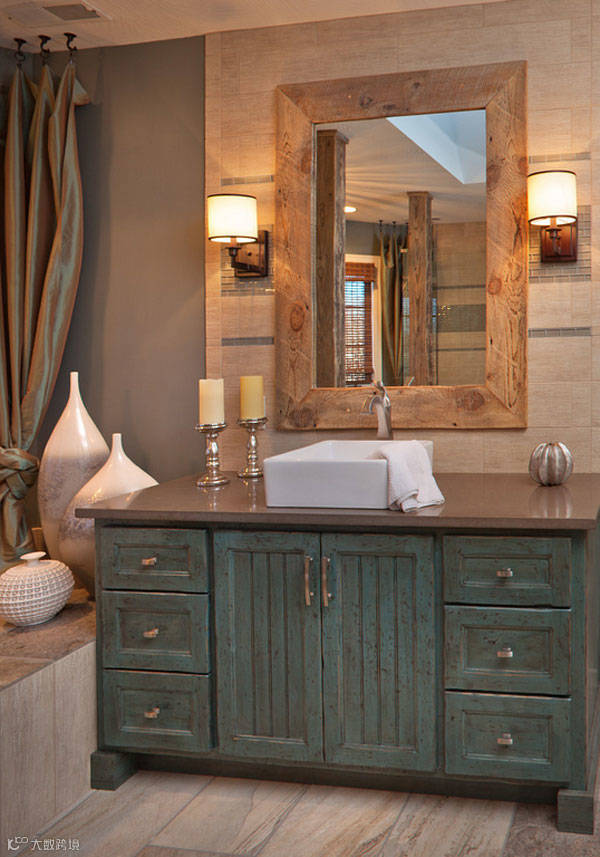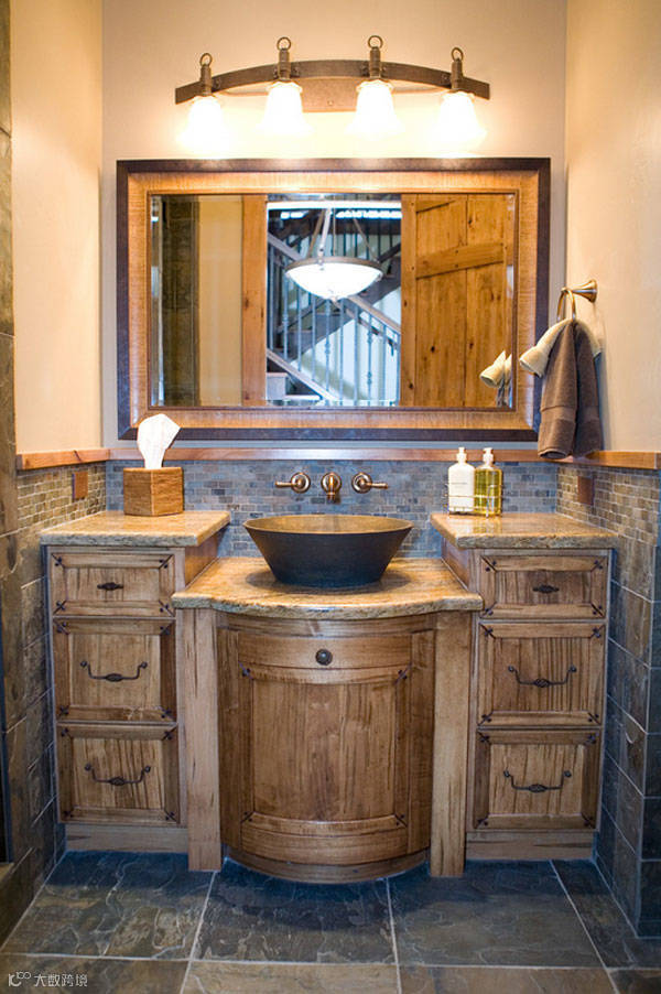 质朴简单的装修更喜欢用木头,结合石头、岩石和砖块,形成一个大胆的艺术组合。通过这种方式,你的浴室显得完美而无可挑剔。有很多家具可以用来装饰你的浴室,其中之一就是浴室洗手盆,它将是你魅力浴室的佳选,因为它的主要材料是木材。