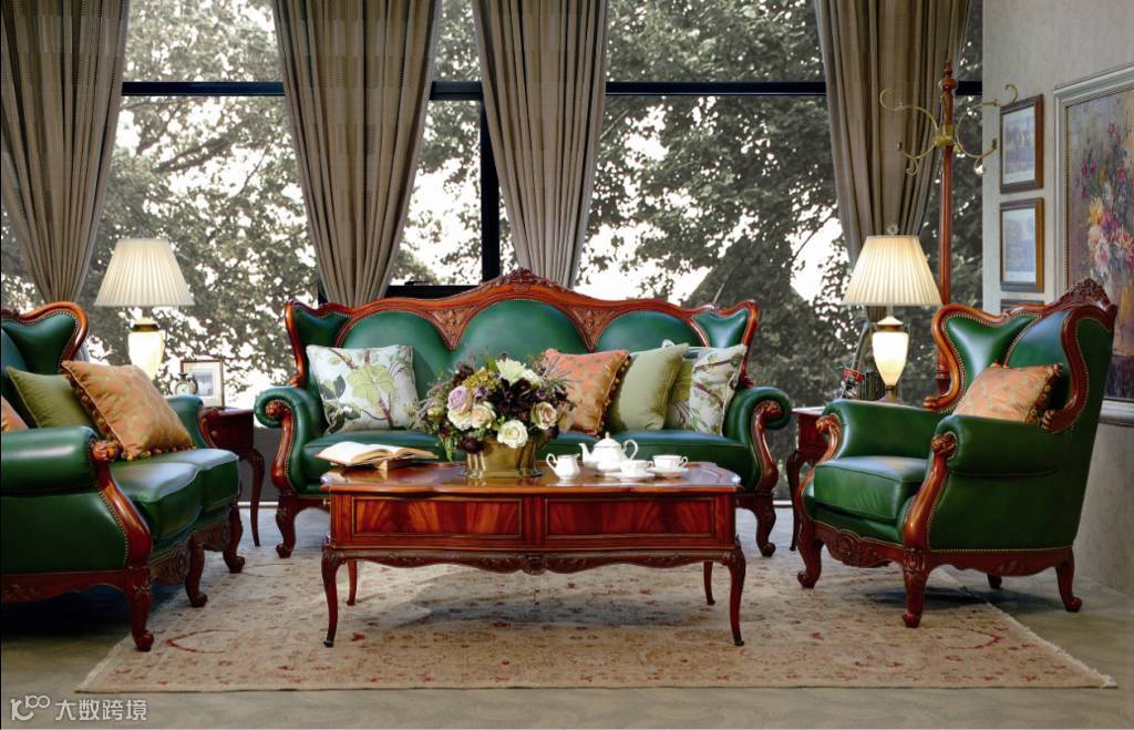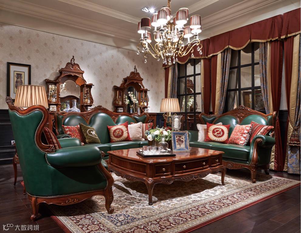 ▲椅类(沙发)上选用了最经典的扇贝、及茛苕叶组合作装饰,蕴含“生命之源、生活富足、生生不息”之意。