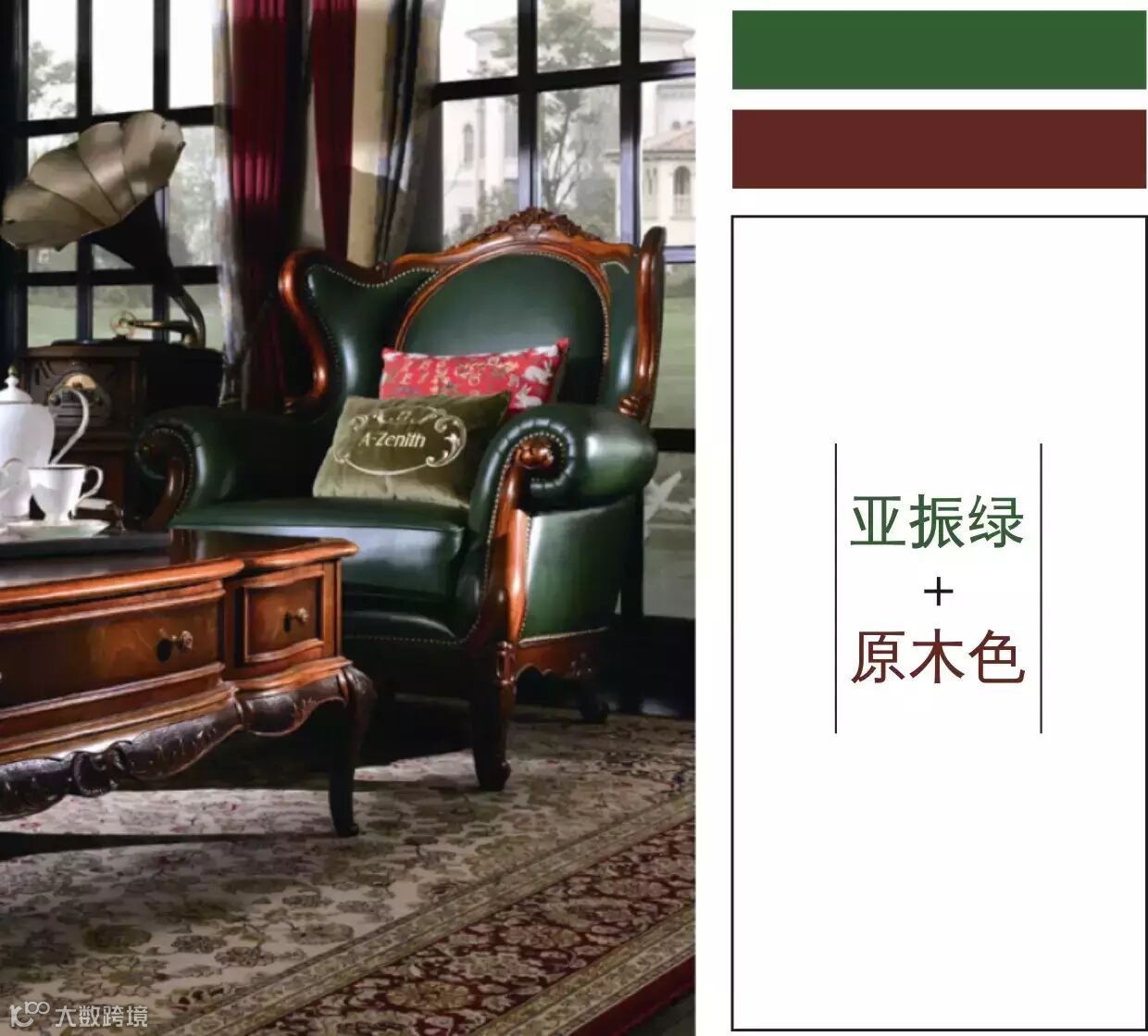 ▲亚振绿就是祖母绿,一种青翠、纯粹。是一款能同时搭配冷色和暖色的空间色彩。加入原木色,不仅可以使居室更显温暖明亮,还是打造海派家具的绝妙配色。