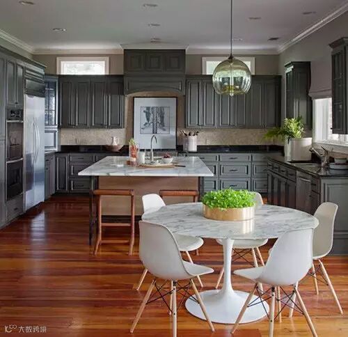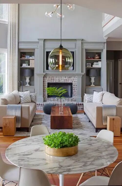点评:极具现代气息的沙发和茶几,既具备时尚空间的美感,又符合简约主义的风格,沉稳内敛的壁炉,却像是把你带到了中世纪的富人家,新鲜而复古。