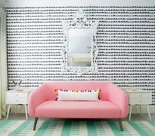 点评:粉色的沙发,在层次感十足的黑白墙壁映衬下,夺人眼目。清新质朴,时尚简约,三两个简单设计便轻松营造出现代主义下的空间感。