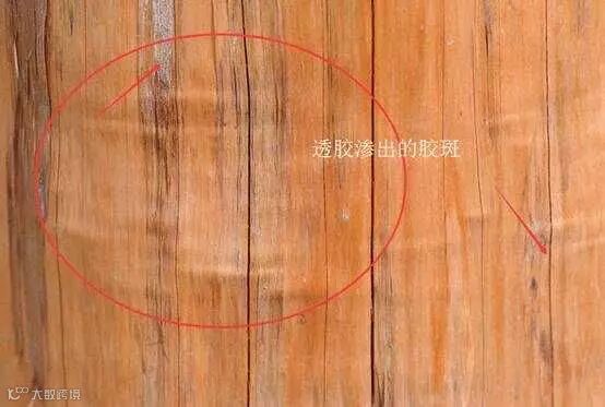 指单板热压胶合后,胶黏剂从单板的孔隙中渗漏出其外表面从而形成胶斑,它的不良影响主要是使工件表面在油漆后可能产生斑点。