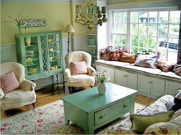 明快家居的配色:明亮的家居使人心情愉悦,但是在颜色搭配的时候,避免使用印有不同色大花小花的家具,使用素色即可。