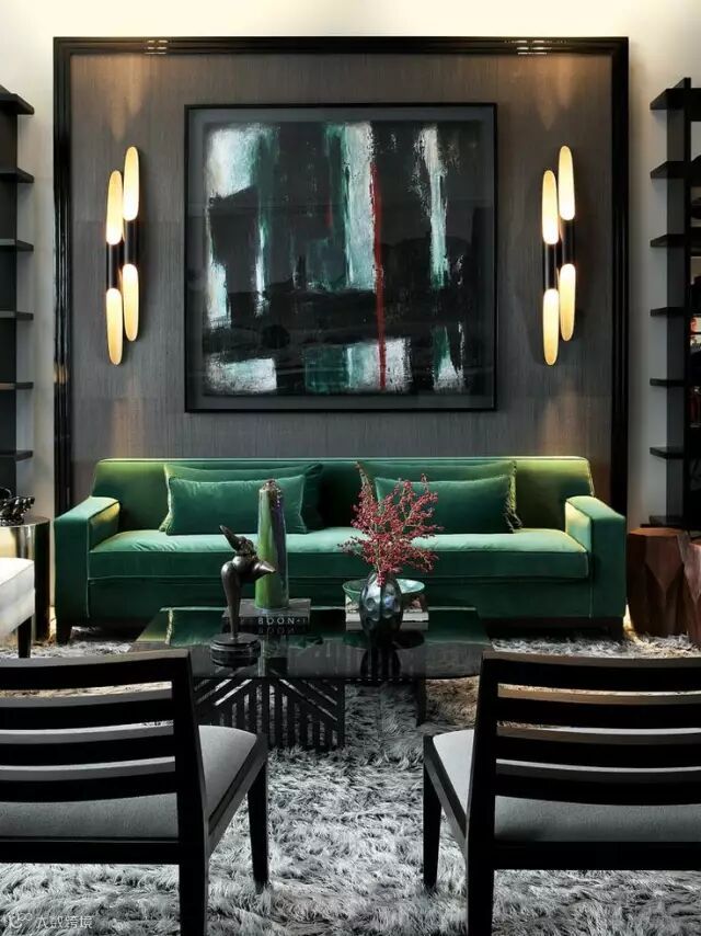 空间组合与色彩搭配真的是一件很奇妙的事,看,如果你把上图中的尖形座椅与落地灯换个正常形状的试试!整体风格肯定会下降一个档次。