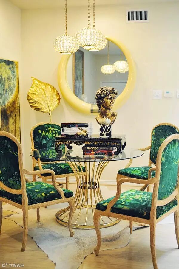 你没看错,这家餐椅使用的色调正是华丽的翡翠绿。但是你发现没有,餐厅设计在了角落里,证明这个家并不大。只是一些细节装饰着实展现出了主人的不俗品味。