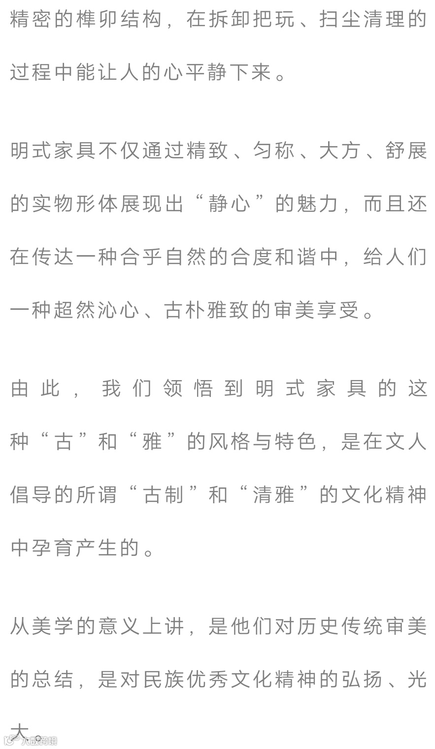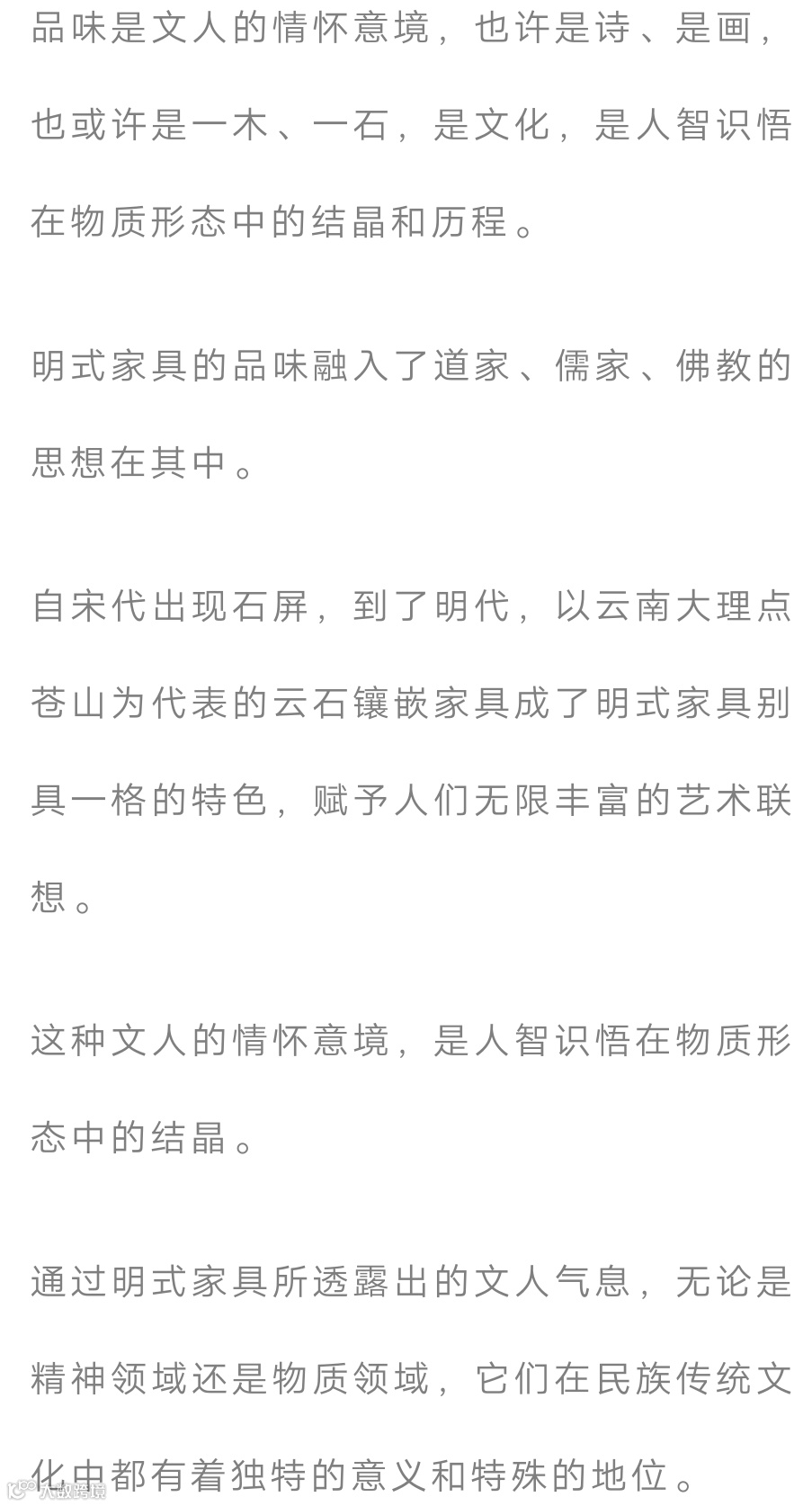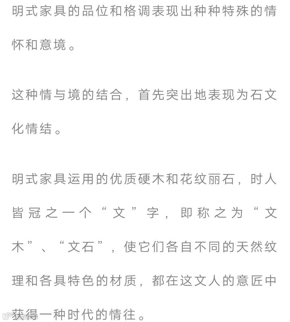 明式家具其型之灵、材之好、艺之精,韵之美,这种简素、意蕴的悠长能够让人心境安逸,表达了中国传统文化的精髓。