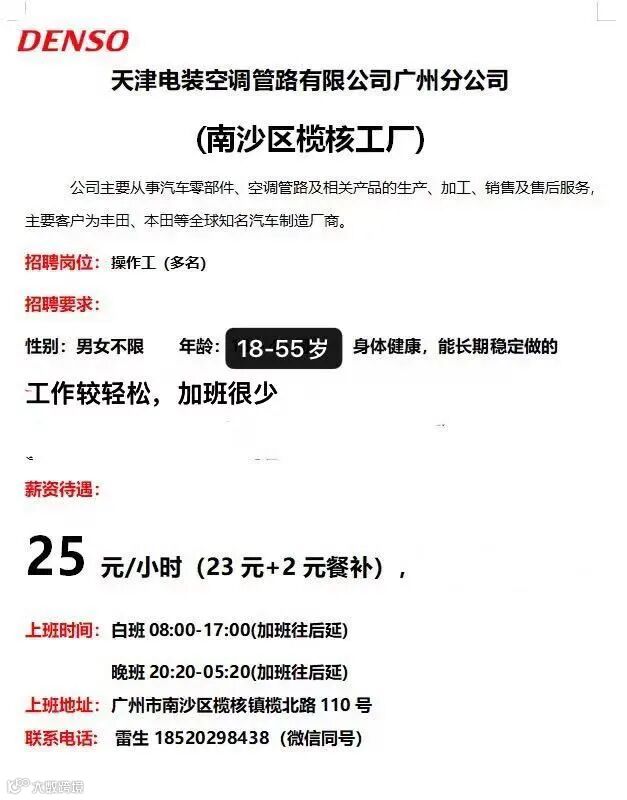 明天面试 | 南沙榄核电装 | 女士优先 |工作轻松,加班较少 | 住榄核优先 |