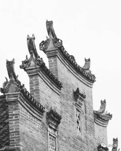 马头墙的“马头”,通常是“金印式”或“朝笏式”,显示出主人对“读书做官”这一理想的追求。高大封闭的墙体,因为马头墙的设计而显得错落有致,那静止、呆板的墙体,因为有了马头墙,从而显出一种动态的美感。而从高处往上看,聚族而居的村落中,高低起伏的马头墙,给人视觉产生一种“万马奔腾”的动感,也隐喻着整个宗族生气勃勃,兴旺发达。