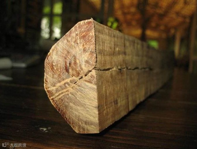不使用的边材呈奶黄色,与心材之间有明显的分界,在被砍伐后,心材是会变色的。