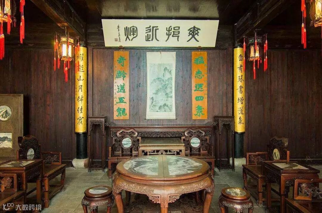 这里值得一提的是,即使是家族中位尊的主人,不行仪式之时,平时也只在右边落座,一是表示谦恭,二是虚位以待,因此上,中堂的座椅不经常同时使用。