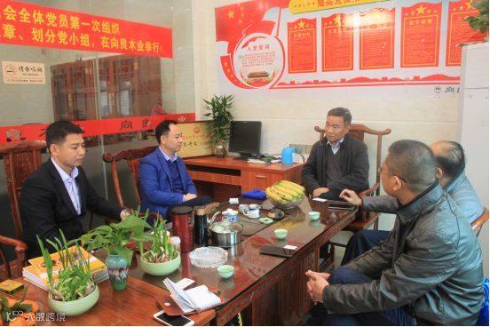 向良木业董事长刘向良(左二)、广东省木材行业协会会长周发扬(居中)、向良木业总经理刘天定(右二)