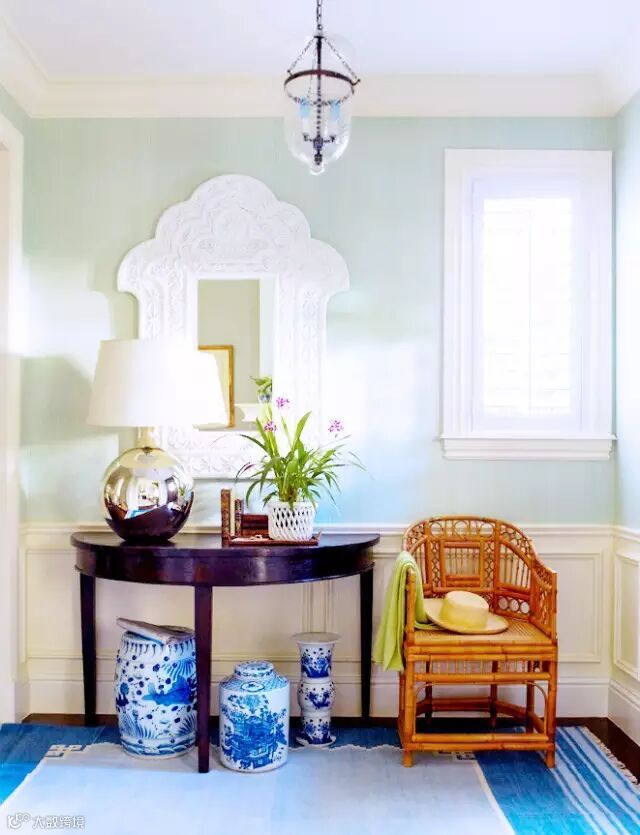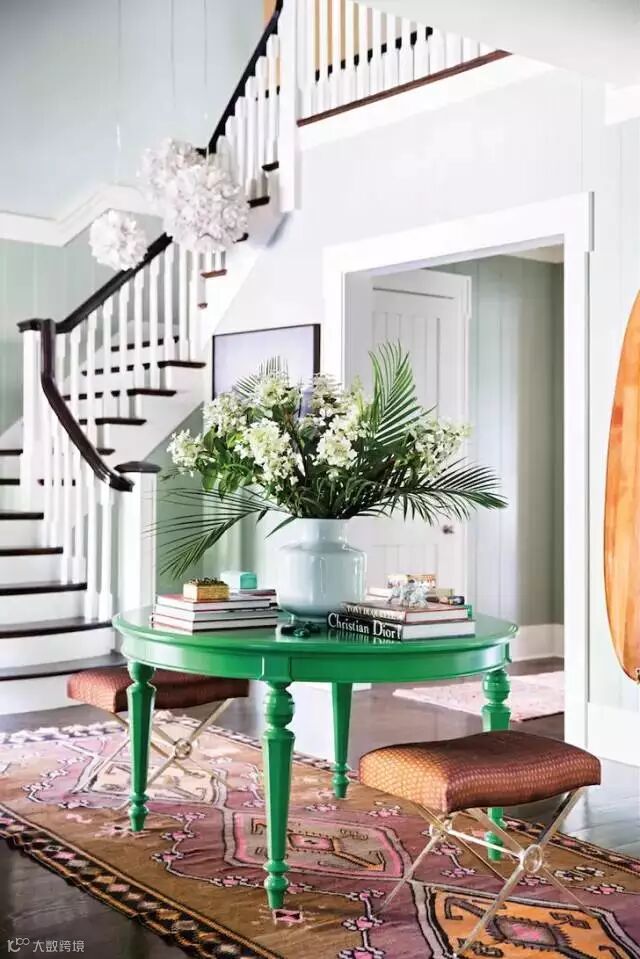 门厅较大的话,可以在空间中央摆一张圆桌。▼